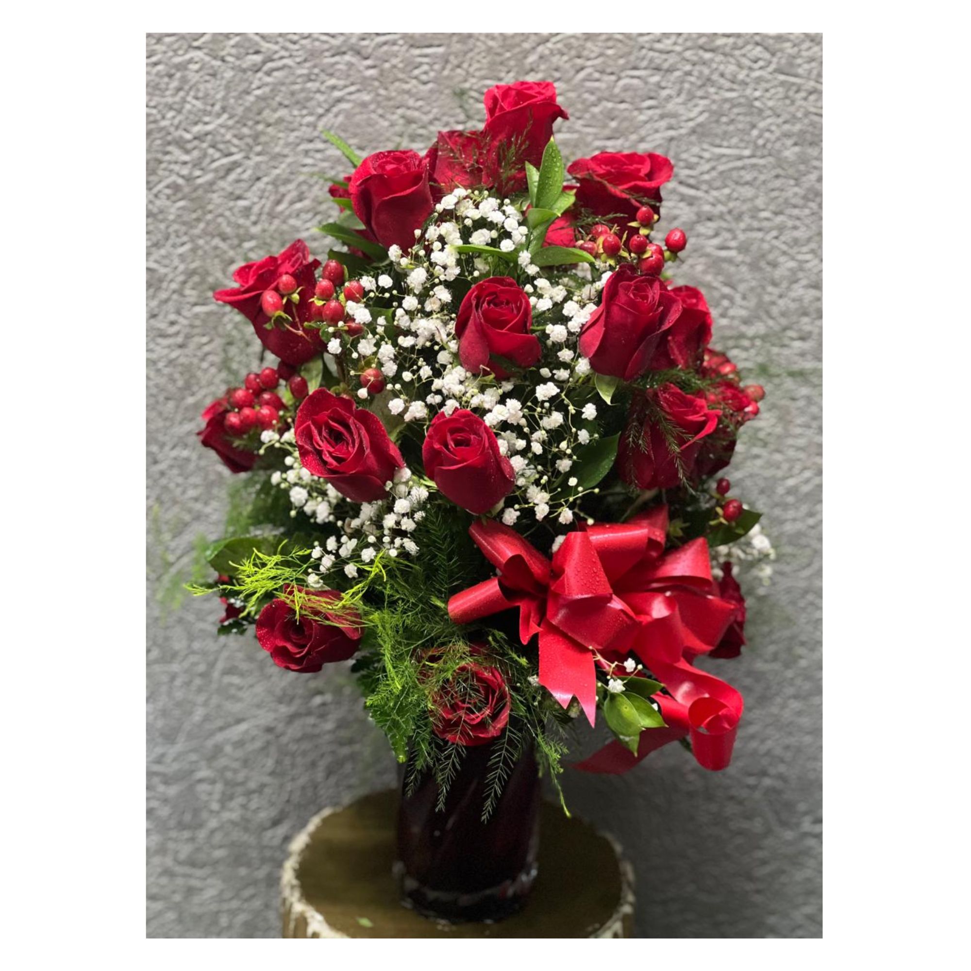 Please note the bouquet pictured reflects our original design. If the exact flowers or container in this arrangement are not available, our florists will create a beautiful bouquet with the freshest available flowers. Actual product may have slight variations in appearance while main features are maintained as best possible. N.B. Flowers and Vase are subject to availability.