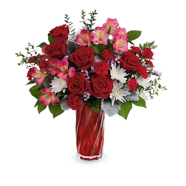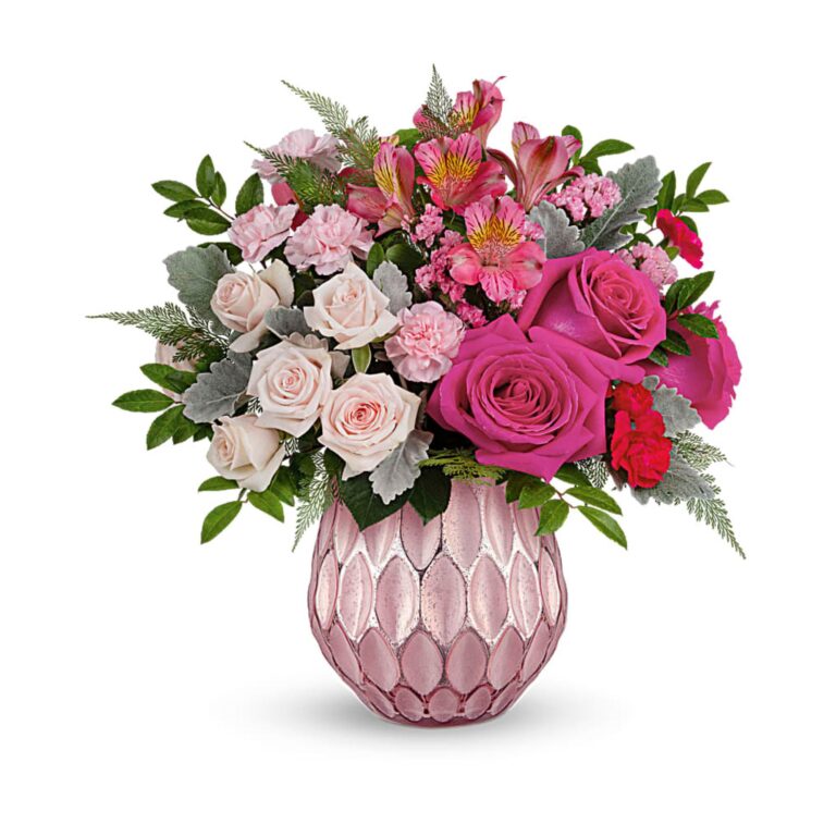Teleflora’s Pretty Love Bouquet blends soft pink roses, delicate blooms, and fresh greenery in a charming blush vase. A sweet and elegant choice for sharing love and appreciation.